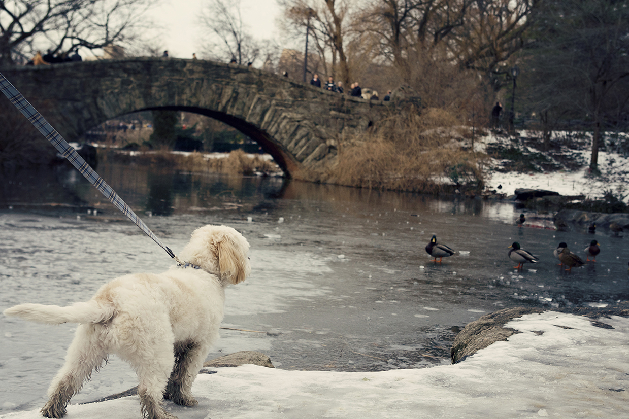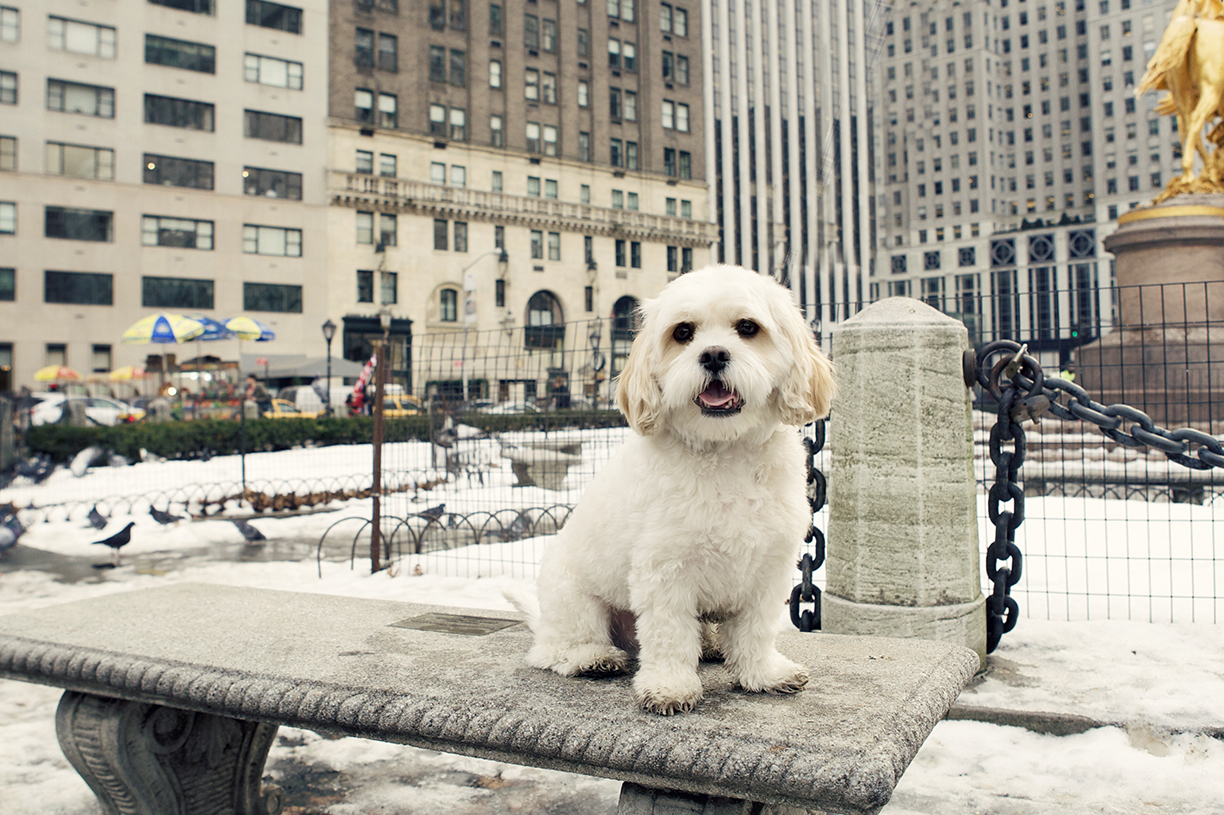 As soon as he got there he was curious about everything and ready to get into anything. First he started barking and trying to get to the beautiful big clydesdale horses that pull the carriages in the park. He chased and barked at the resident park pigeons! Then when he spotted the ducks walking on the frozen pond, at the south side of Central Park, he even tried chasing them on the the ice. Then he took off to the bridge to see all the tourist taking their holiday snaps. Oliver is a very determined, mischievous little pup and you can’t help admire his cunning ways. I think it is hilarious that Oliver will take any object around the house that he thinks will get him in trouble, toss it around in front of someone until they notice he took something he shouldn’t have, then he runs towards his treat jar. He spits out the object in exchange for a cookie. Though Oliver’s favorite toy is a Pascal plush toy from the movie Tangled. It is the one toy he always wants to play with, sometimes he even sleeps with it.
